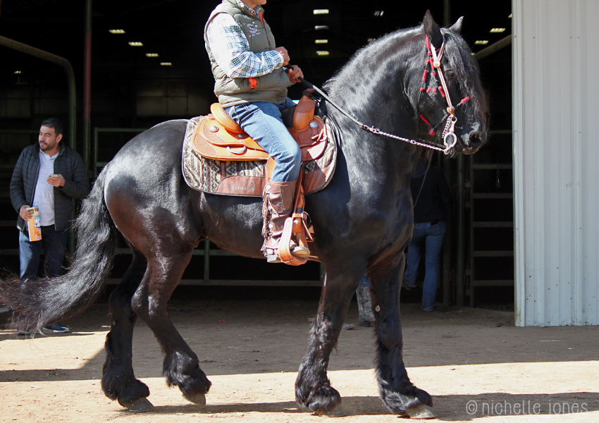 I came across this stallion a couple times over the weekend. I believe he is a Friesian stallion named Crusader Quest: