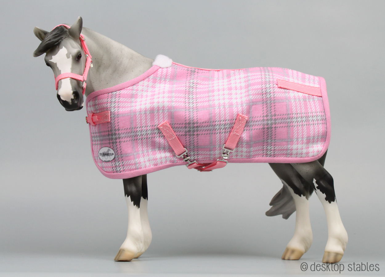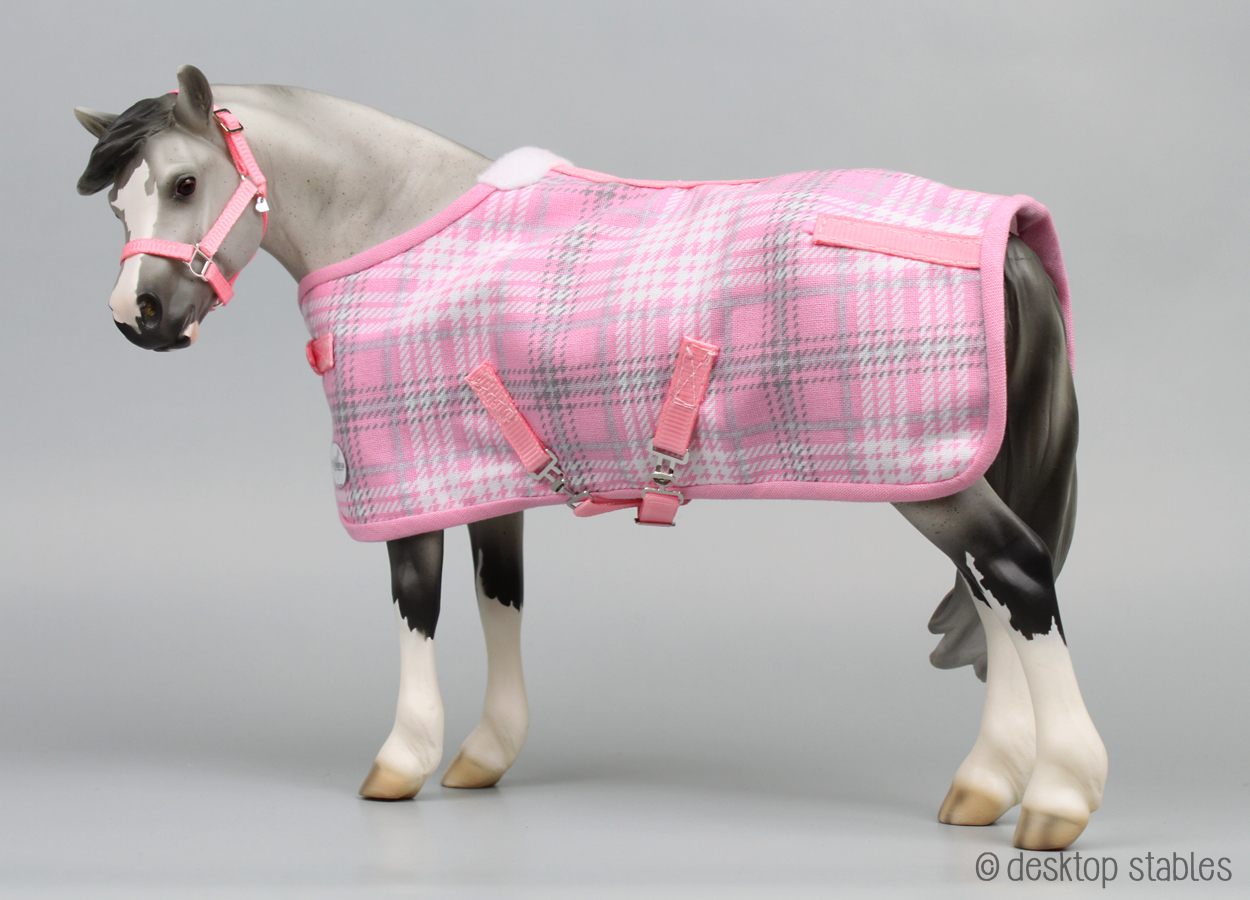 I needed a simple project to work on today, so I put together a ribbon halter for my Rhian model. This led to a matching blanket.