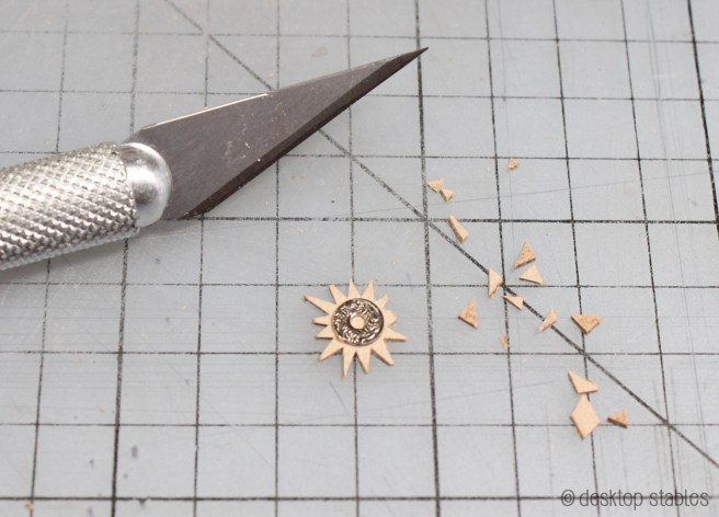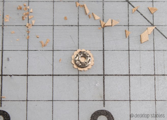 Then gradually cut each one down, creating a gear shape: