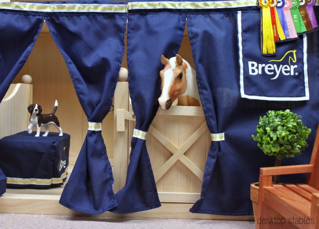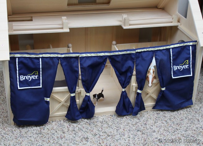 Last year Breyer had me design a prototype for a set of show drapes to fit their wood barns. It’s taken me the majority of the year, but now I finally have these in hand, and I’m so excited!!