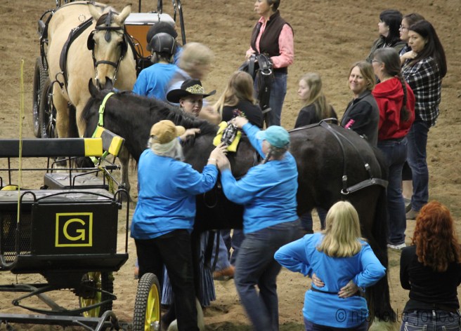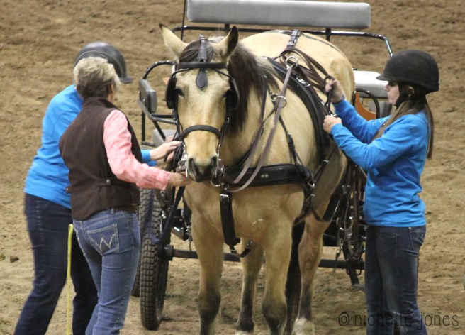 This was one of the Colorado Driving Society’s workshops, where they were demonstrating how to harness, hitch and drive a horse.