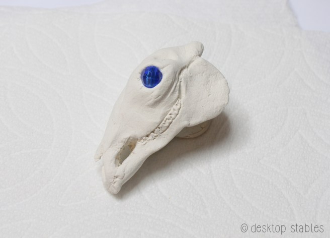 Sculpting the skull was the most difficult part. Even with references and a couple of Maggie’s 3D printed skulls in front of me (I was so tempted to just customize one but I couldn’t bring myself to do it!) my skull is really weird and rough. Sculpting is hard! (and this clay was drying really fast which didn’t help…)