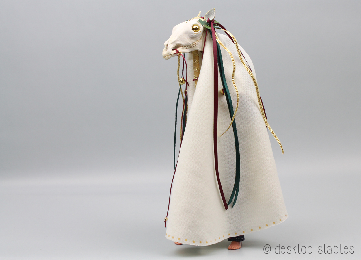 Last but not least, after seeing the Mari Lwyd workshop by Erin Krembs, I knew I had to try making one. From the description, “The Mari Lwyd is a Welsh tradition that takes place during the December holiday season. Revelers parade around town with this hobby-horse like instrument, draped in fabric to hide their true identity. Revelers visit homes and businesses around towns and engage the occupants in a call and response. If the occupant can’t win with their rhymes the Mari Lwyd is invited into their home and offered food and drink in exchange for good luck in the coming year.”
