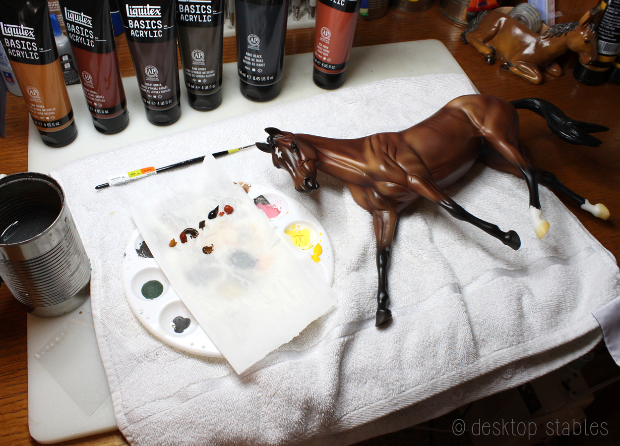 You have hit upon a topic I’m certain just about about every Breyer owner could use. I don’t want to get into having to learn how to be a first class re-painter to fix rubs so the dry paint has a smooth surface. I think I can pick up colour matching skills, but I don’t know how to prepare the rub surface first . Would it be extremely fine sandpaper on the rub, then add gesso, then sand again, then add paint match? I think this might be a very popular subject for a blog.