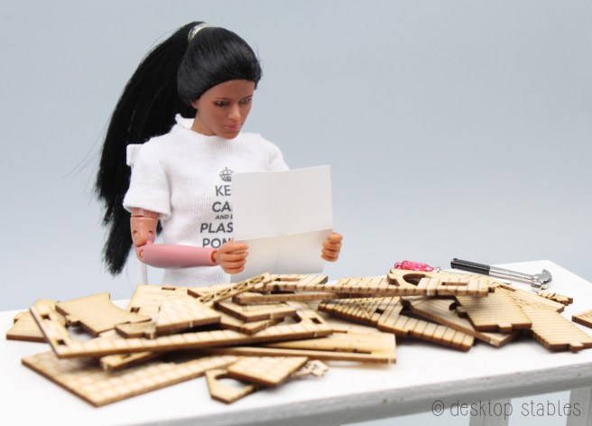 A few weeks ago I purchased a mini barn kit from Sinny’s Mini Art. I first saw this site shared on Anne Field’s blog, and knew I had to have it. The barn is a tiny knock off of Breyer’s deluxe stable, in 1:144 scale. This is dollhouse scale in dollhouse scale. 😄
