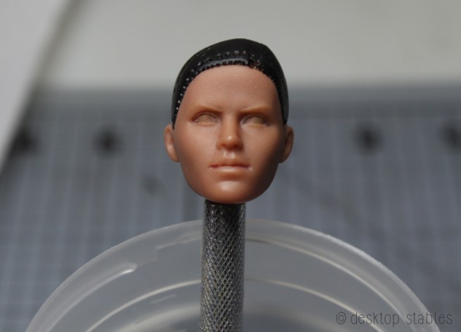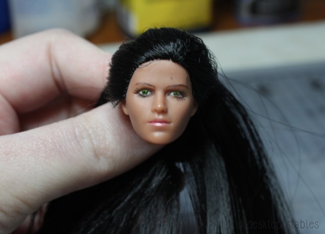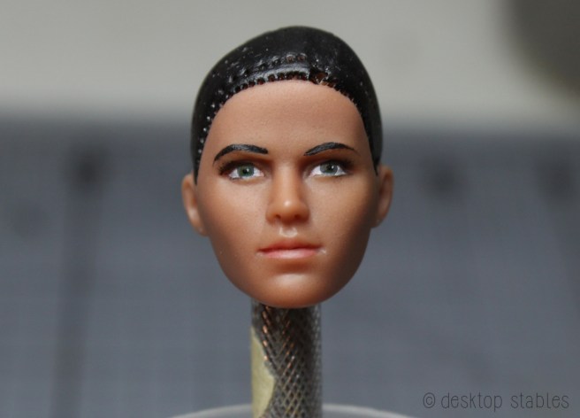 Since re-rooting was out, I decided to paint her face next. I tried to keep it natural, and kept her green eyes. They’re more grey-green here, but that’s better than the neon color they were before.
