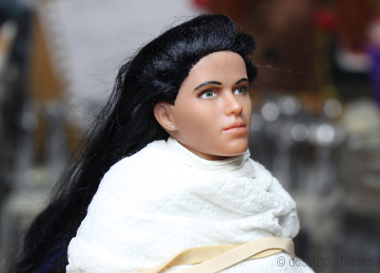 Since re-rooting was out, I decided to paint her face next. I tried to keep it natural, and kept her green eyes. They’re more grey-green here, but that’s better than the neon color they were before.