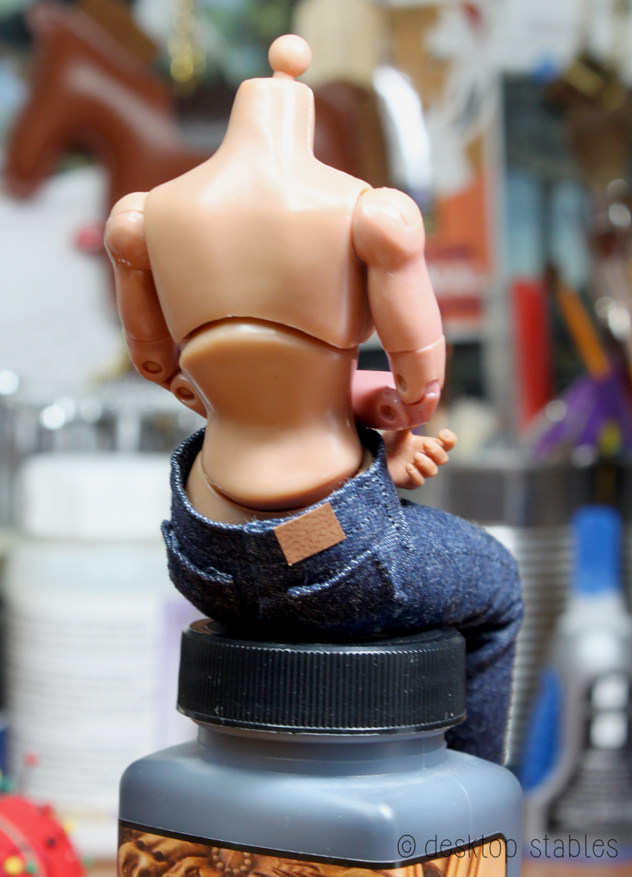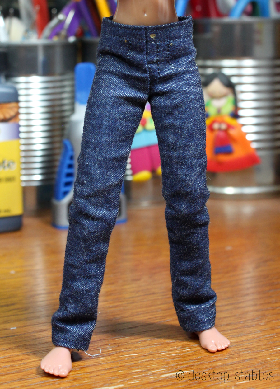 I started by working on her clothing. The first thing to tackle was her jeans. This pair is fine, but they’re more of a low-rise cut which is… unfortunate whenever the doll is sitting. 😂 So fixing that was a priority. Another thing was getting over the idea to make everything removeable. I like the idea but it has drawbacks in this scale, mainly with excess bulk. To be honest, I’m at the point where I don’t want to waste time fiddling with tiny doll clothes anymore.