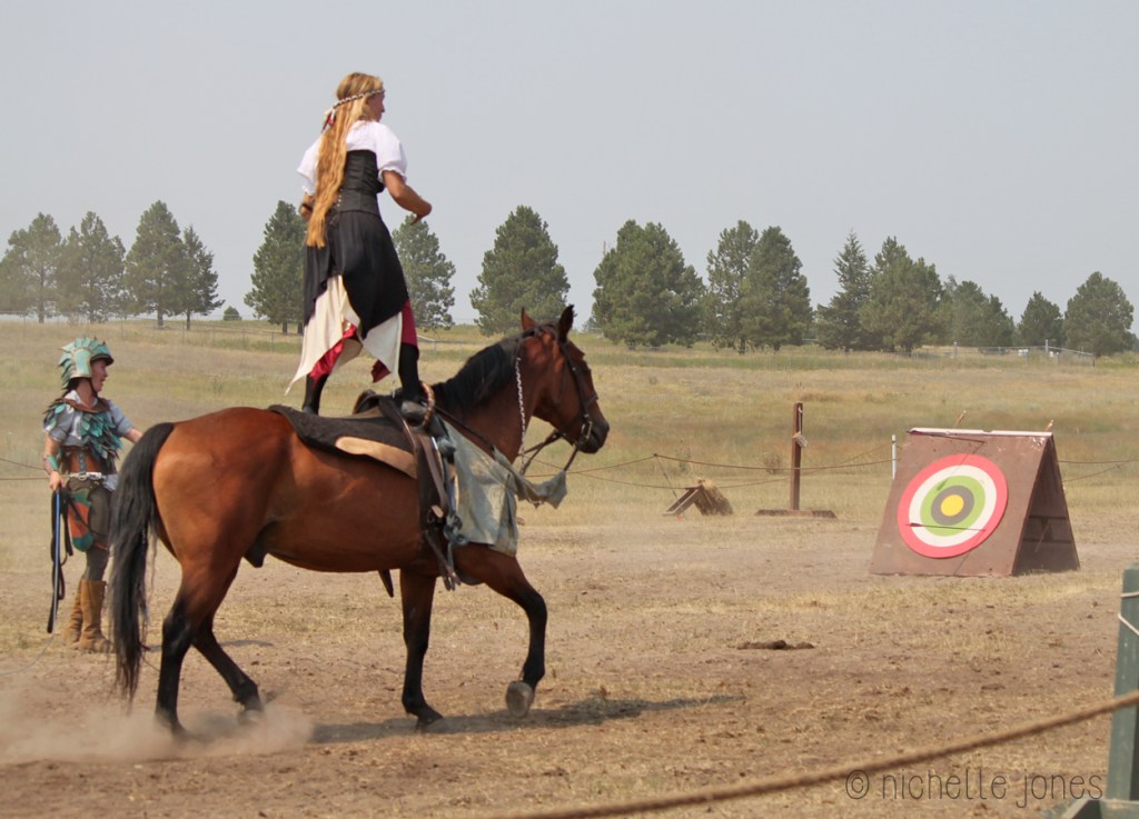 The last demonstration I watched at the faire was some horseback archery. I especially liked their costumes!