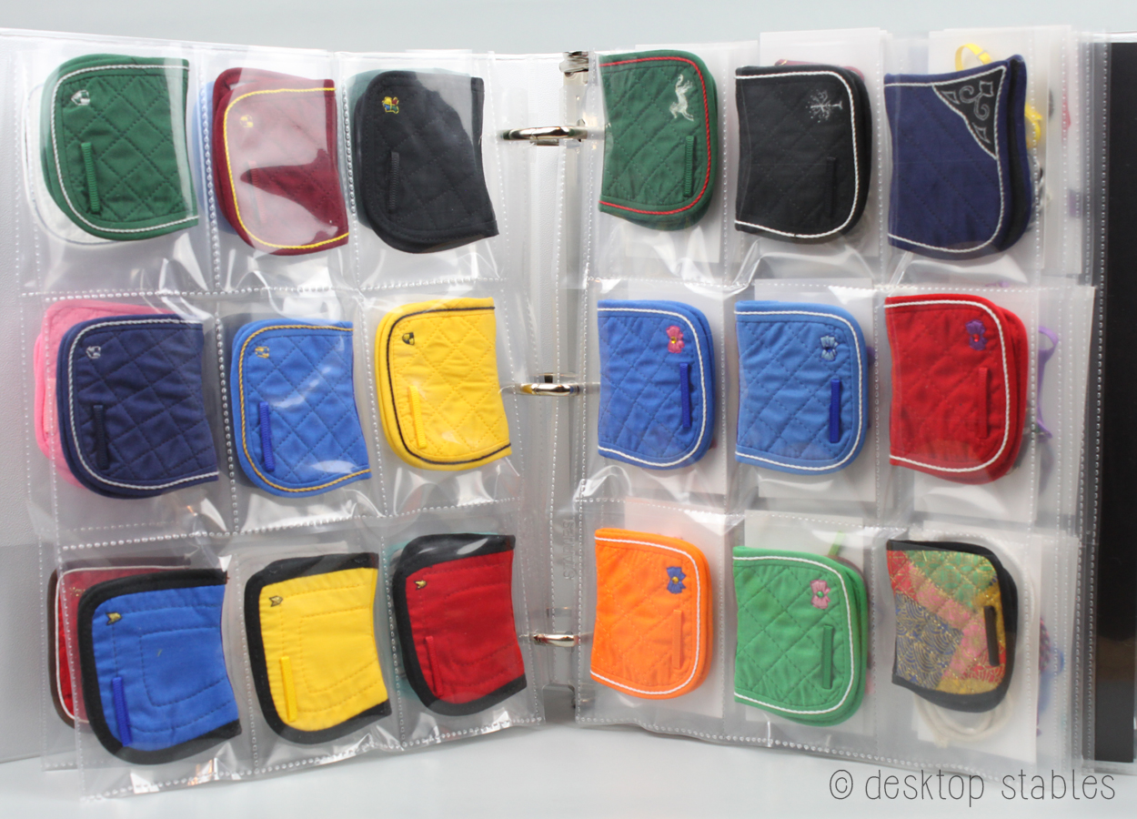 The trading card pockets fit my English saddle pads nicely, so I have a few sheets full of those. Western pads are a bit too long.