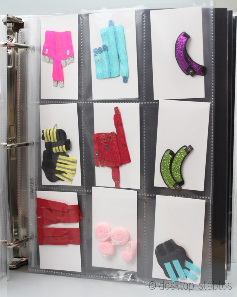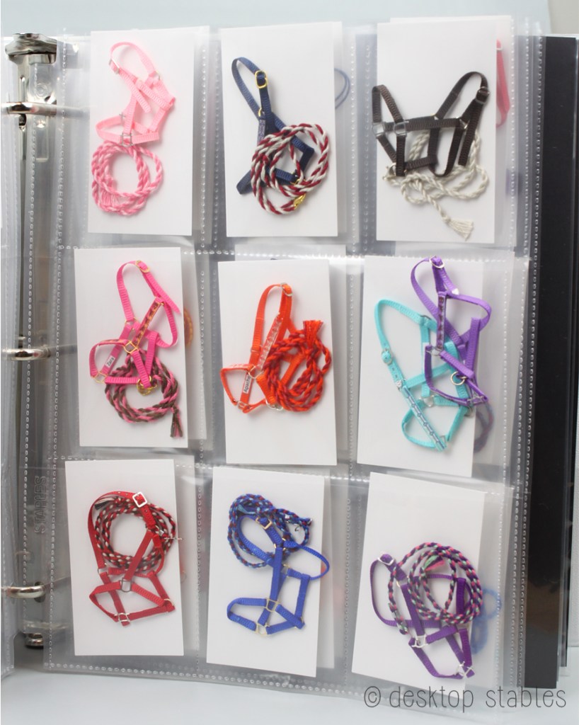 I also have a couple pages full of halters. I used my extra business cards to help hold them in place and make removing them easier.