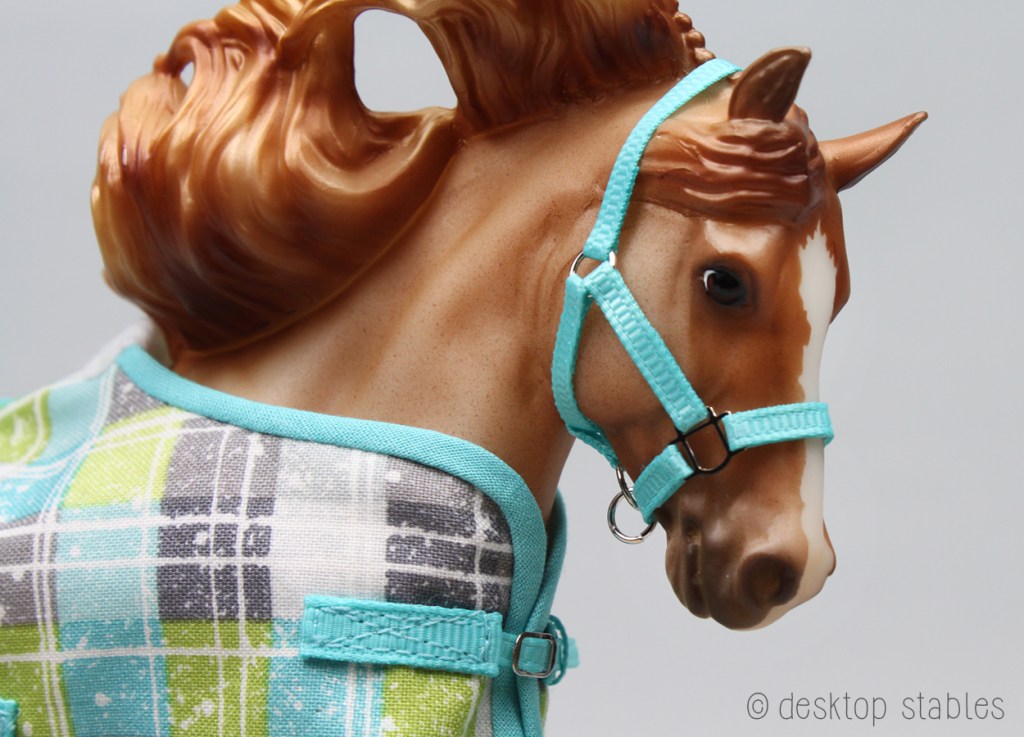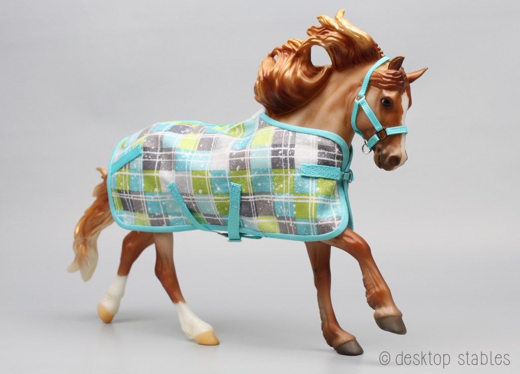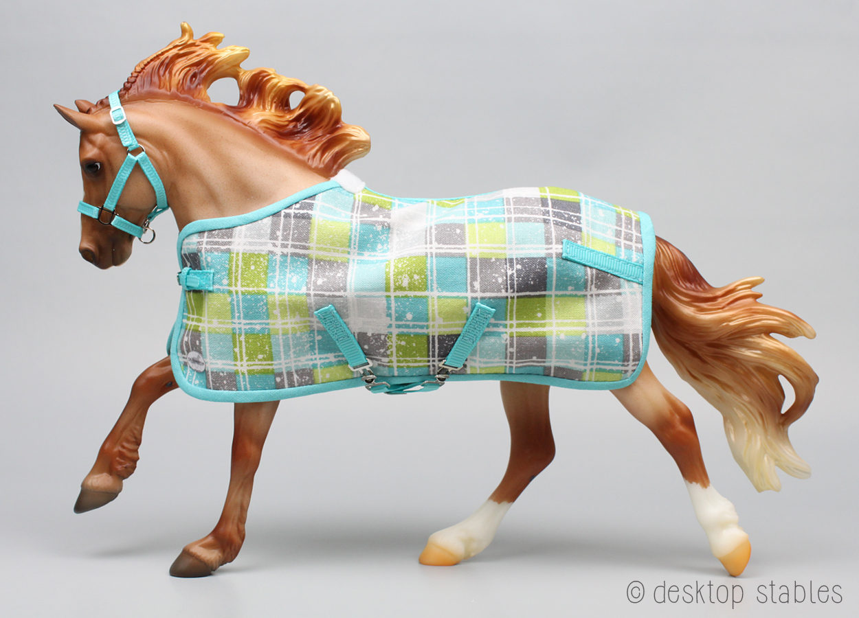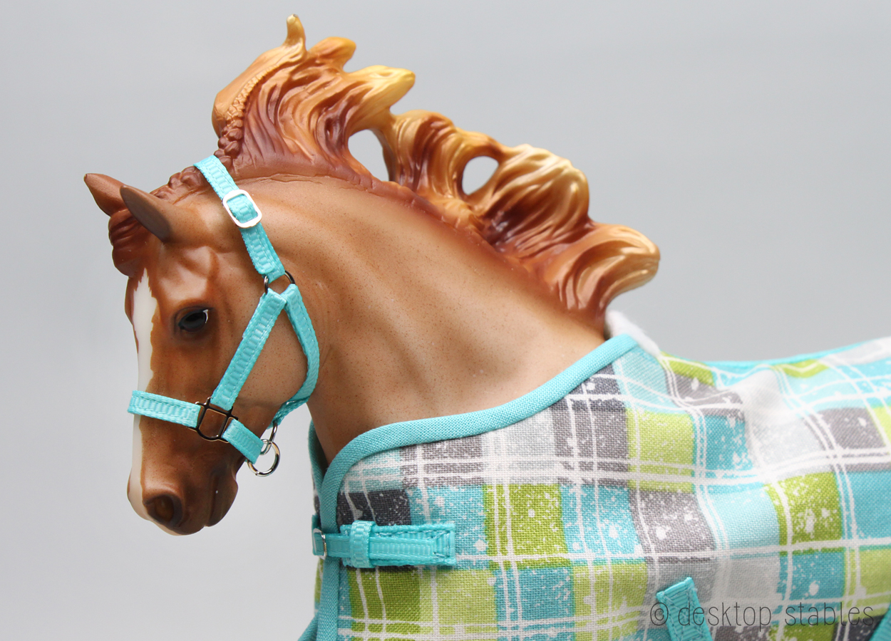 I wanted to make this horse a blanket similar to the pink one I made for the Welsh pony. Teal seemed like a fitting color!