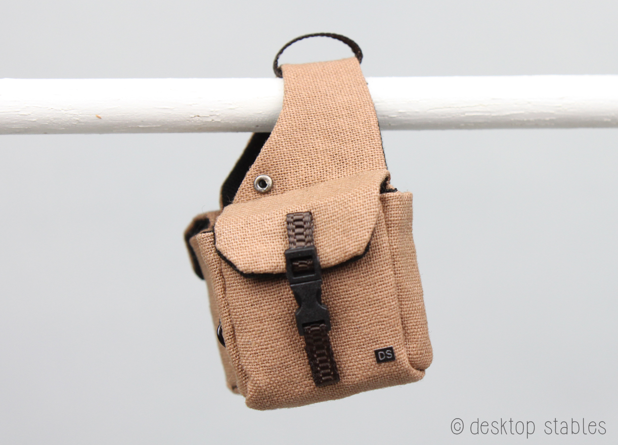Since this bag was mostly an experiment, I decided to stick with one grommet on each side. In model scale, this is mostly for show, but I suppose they could be tied down to a saddle, or have faux strings added.
