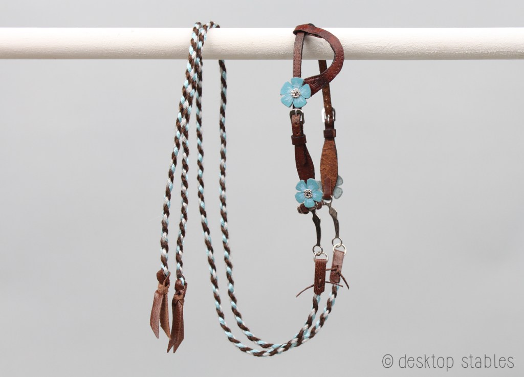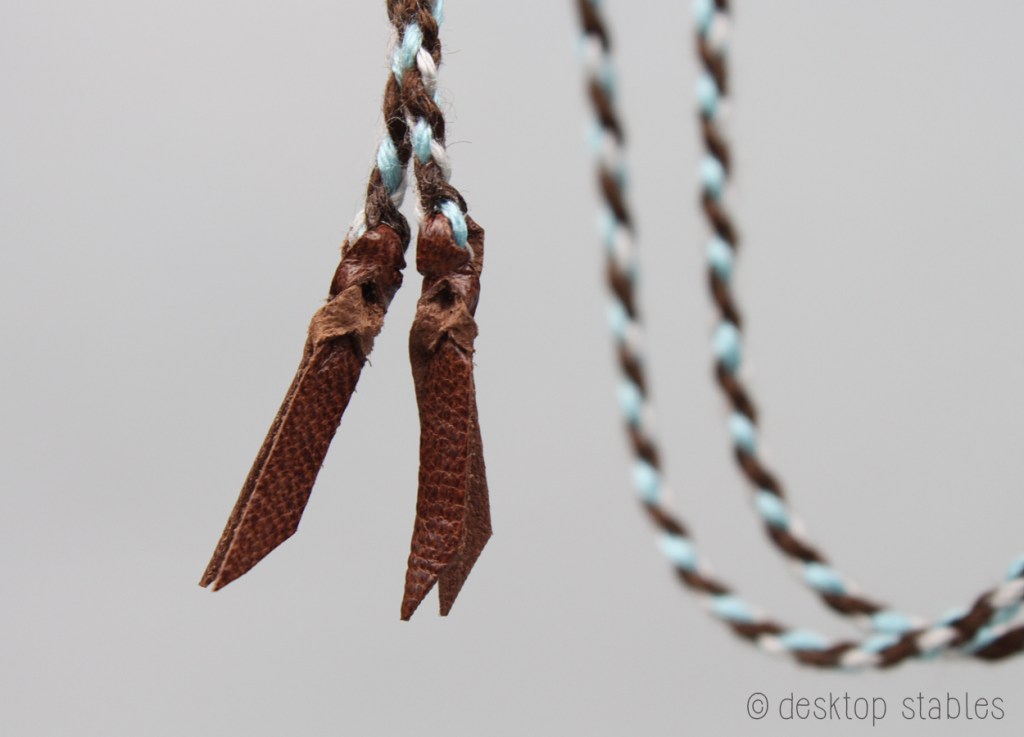 The reins were made with a four strand round braid, and are attached with tiny leather laces.