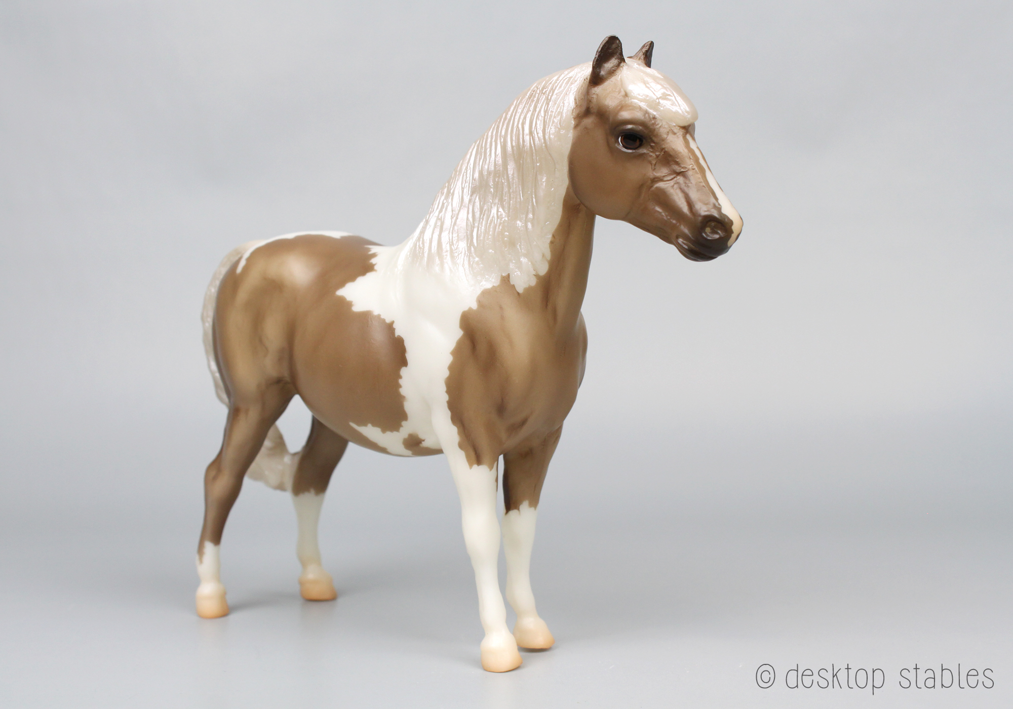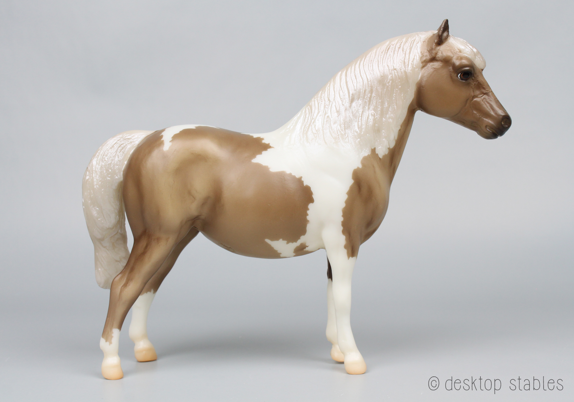 Without her blanket, she’s a mushroom tobiano with a pearly mane and tail:
