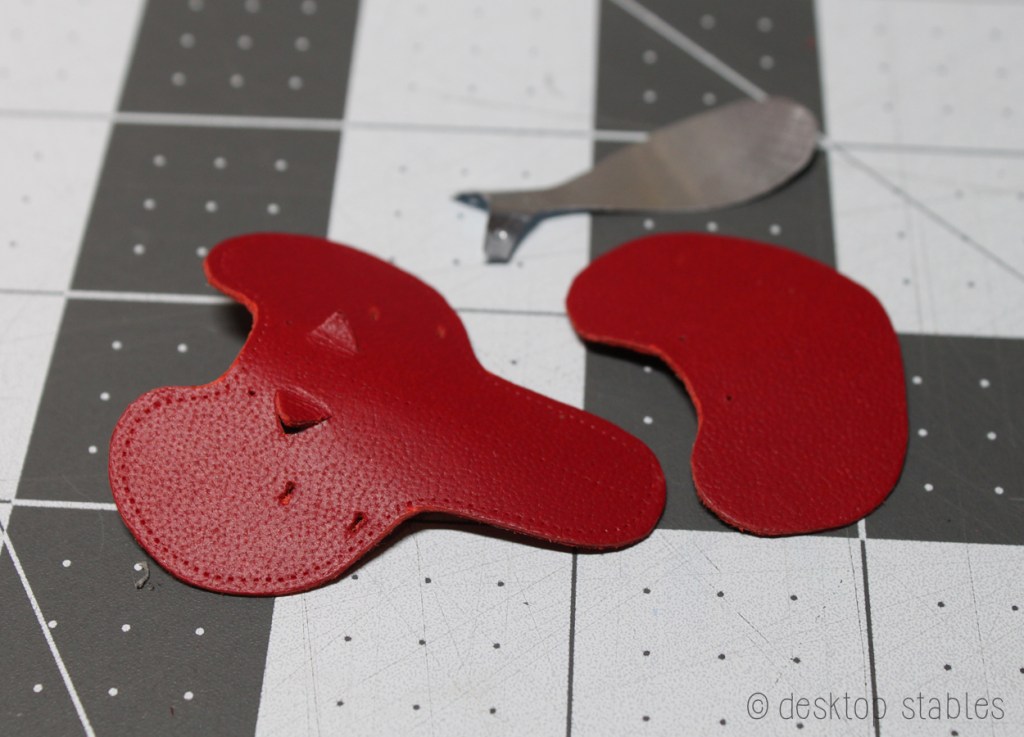I’m using red kangaroo leather, and the tree is from an aluminum can. I figured a lightweight metal that doesn’t need to hold it’s shape very well was appropriate here!