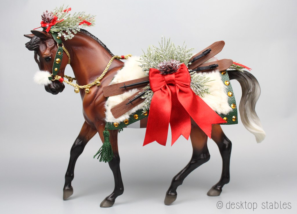 Congrats and neato on the design! I love the skis and furs! I too love a “working” Christmas costume horse, which is why my all time fav is Jewel (2010) the galloping buckskin Show Jumper. It’s such a relief not to have 4 stockings.