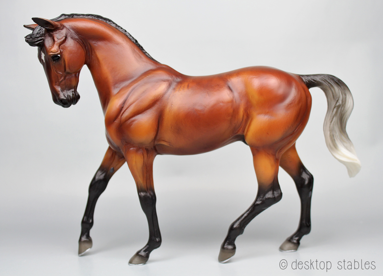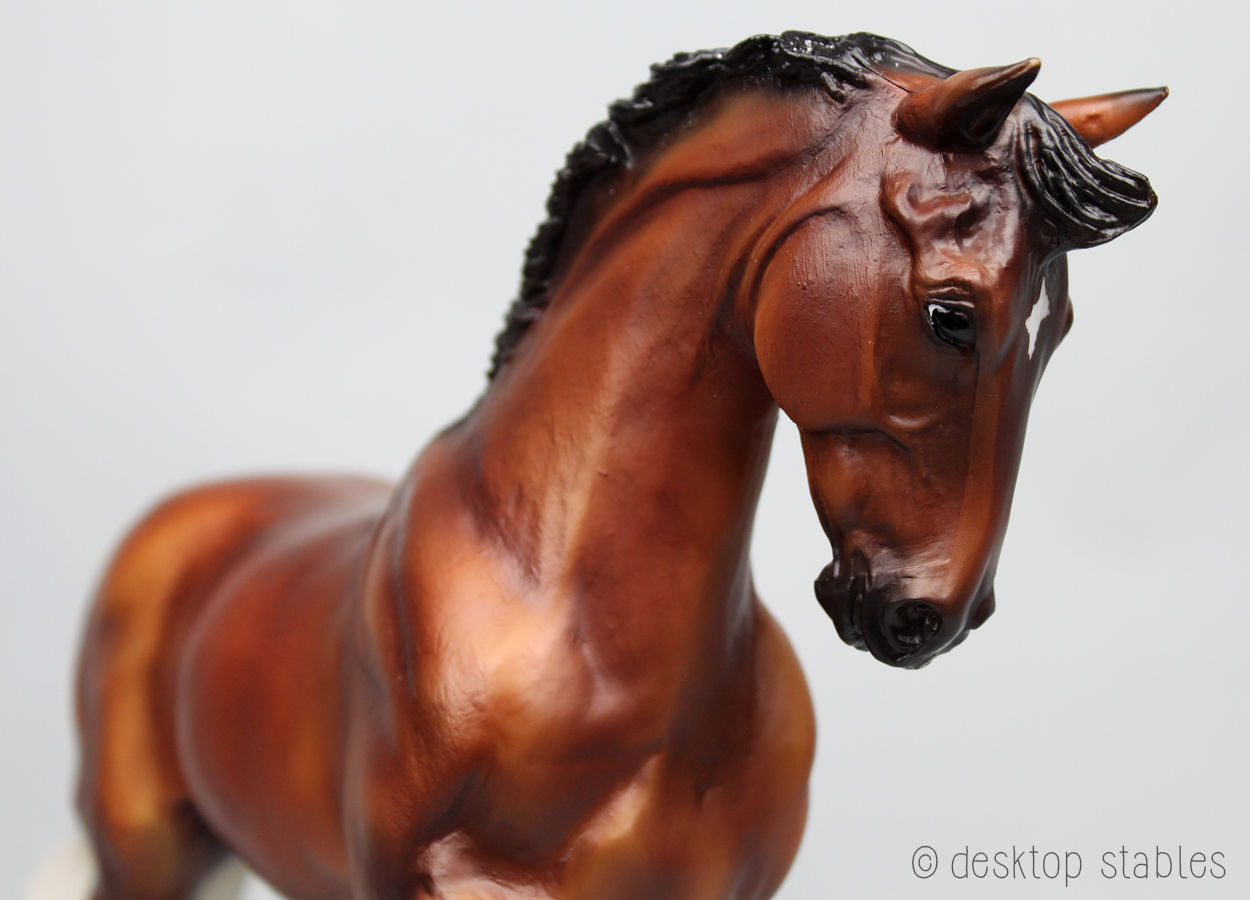 The chestnuts on mine were missing, so I broke out the paint and filled those in. While I was at it, I touched up some eartip rubs and painted his shoes. It bothers me when Breyers have sculpted shoes but they aren’t painted. 😄