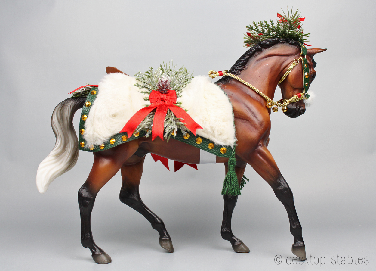 Congrats and neato on the design! I love the skis and furs! I too love a “working” Christmas costume horse, which is why my all time fav is Jewel (2010) the galloping buckskin Show Jumper. It’s such a relief not to have 4 stockings.