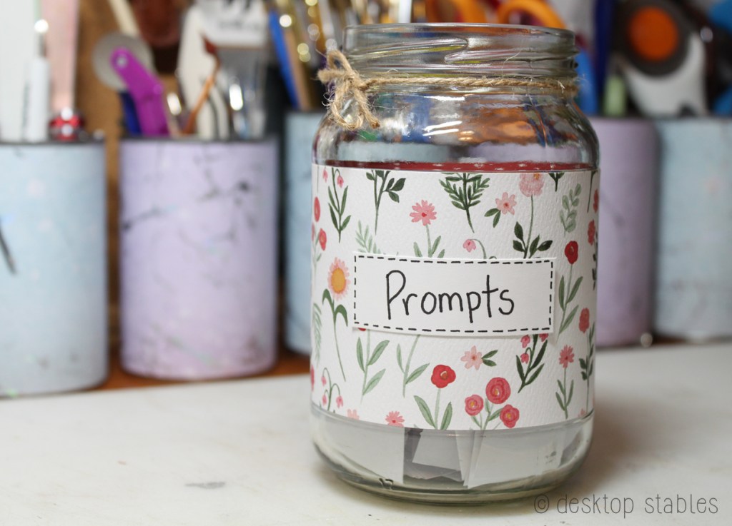 While organizing and rearranging my workspace this year, I decided to create a “prompt” jar. It’s full of slips of paper of random ideas, including tack projects or colors or themes or objects. It’s been a few weeks since I’ve scribbled them all down and I think I’ve already forgotten most of them.