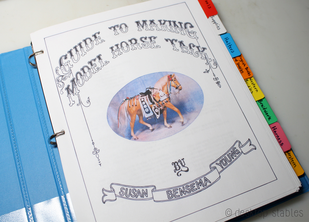 Another goal I’ve had, for an embarrassing amount of time now, was to print up my copy of The Guide to Making Model Horse Tack, by Susan Bensema Young. I purchased this in PDF form ages ago, and have slowly been working on getting it printed and inserted into a binder. It’s so much easier to reference this way, rather than scrolling through the files on my computer.